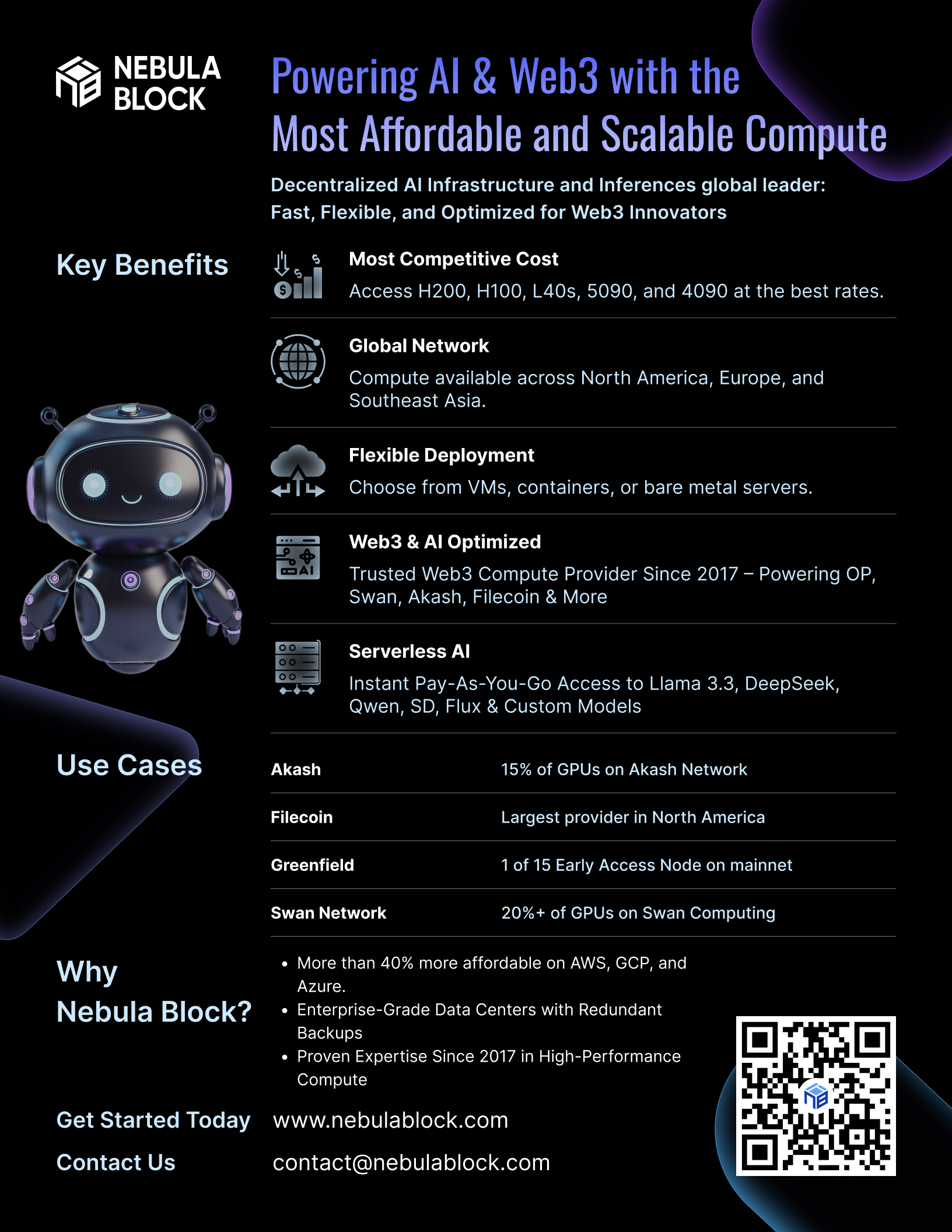 Nebula Block provides high-performance GPU infrastructure and cloud-native tools to help AI builders and decentralized teams scale efficiently and affordably.