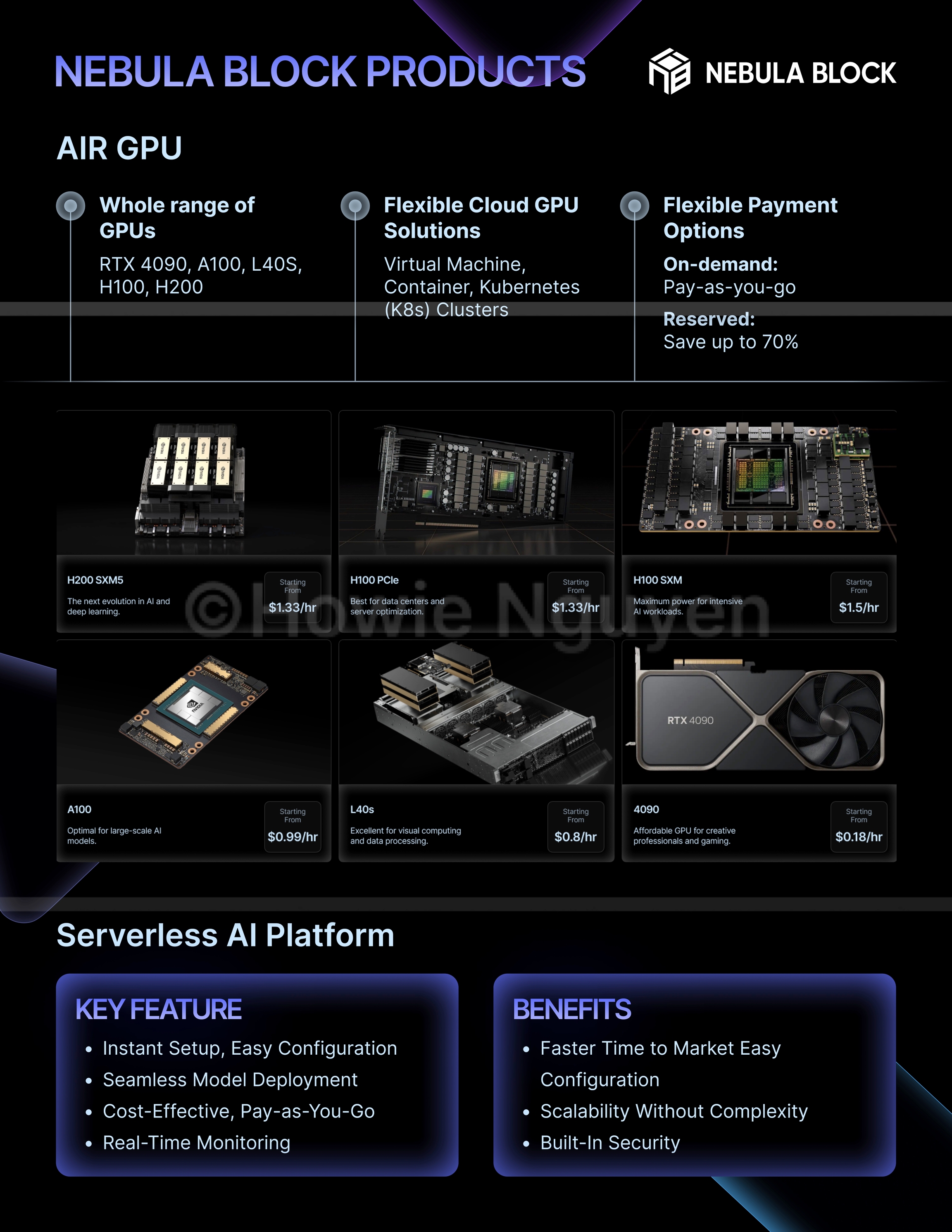 Why Nebula Block? • More Affordable than AWS, GCP, Azure • Enterprise-Grade Data Centers with Redundant Backups • Proven Expertise Since 2017 in High-Performance Compute