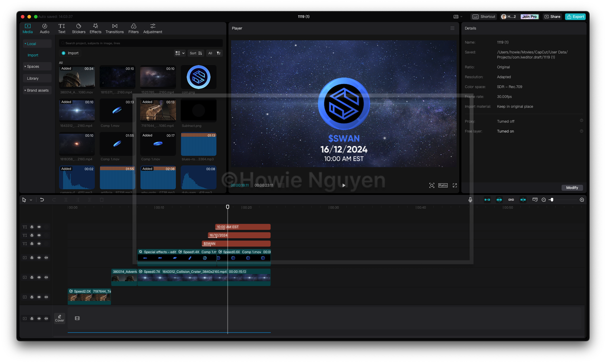 Use tools like After Effects, Maya, or CapCut to produce the video, incorporating stock footage, animations, or sound as needed. Refine the output with transitions, color grading, and polished effects.